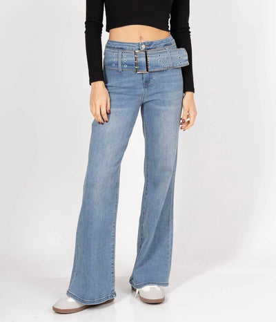 Blue Super Wide Leg Stretch Jeans with Belt