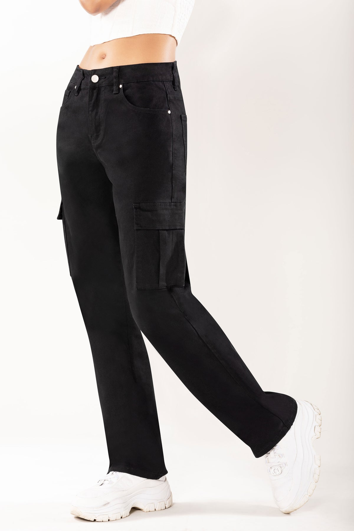 Designed for bold, confident style, the NoirFlex Bootcut Cargo Jeans blend flattering high-rise fit with sleek bootcut legs for a timeless silhouette. Made from soft stretch fabric, they move with you for all-day comfort, while functional cargo pockets add an edgy, street-chic touch. Dress them up with heels or keep it casual with sneakers-either way, these jeans are a must-have for effortless fashion.