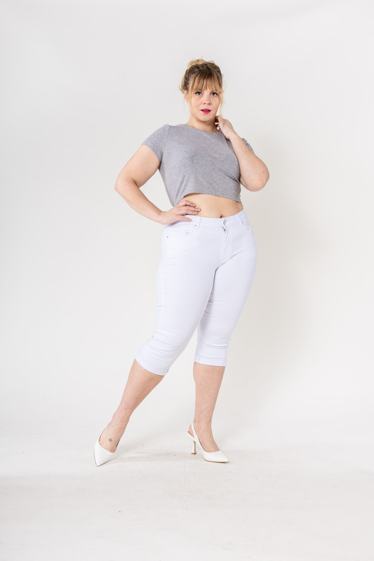SnowFlex High-Waist Plus Size Cropped Jeans – White